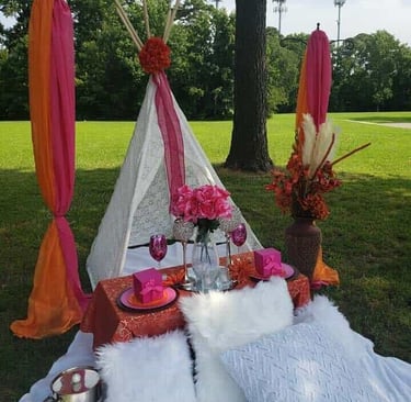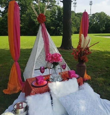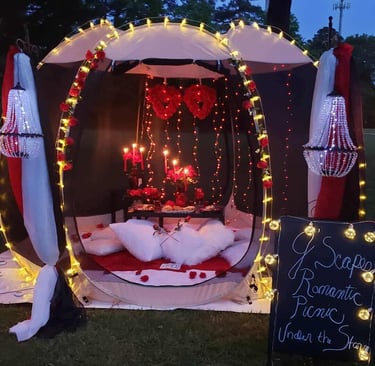 J'Scapes & Elegant Designs by Jennifer offer romantic Private Dining experiences. Our services include Romantic Private Chef services including dinners for two, Luxury picnics, hotel room setups & decor and Kids Sleepover Teepee Parties. We also provide services in our heated Bubble tent in the colder months and a screened version in the warmer months. We service parties of 10 or less for our Private Dinner parties.